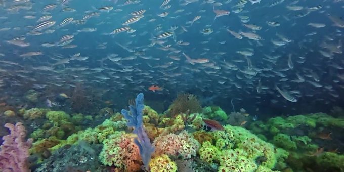 マダイやブリもアタックが見られ、ネンブツダイ、イサキ、カタクチイワシなどもプレッシャー掛けられつつまとまっていました。